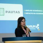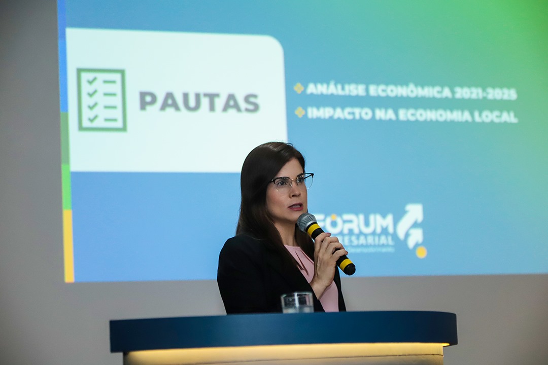 A coordenadora do Fórum Empresarial, Tíssia Veloso, apresentou um panorama econômico com dados referentes a 2020–2024, incluindo volume financeiro movimentado, número de contratos e empresas contratadas.