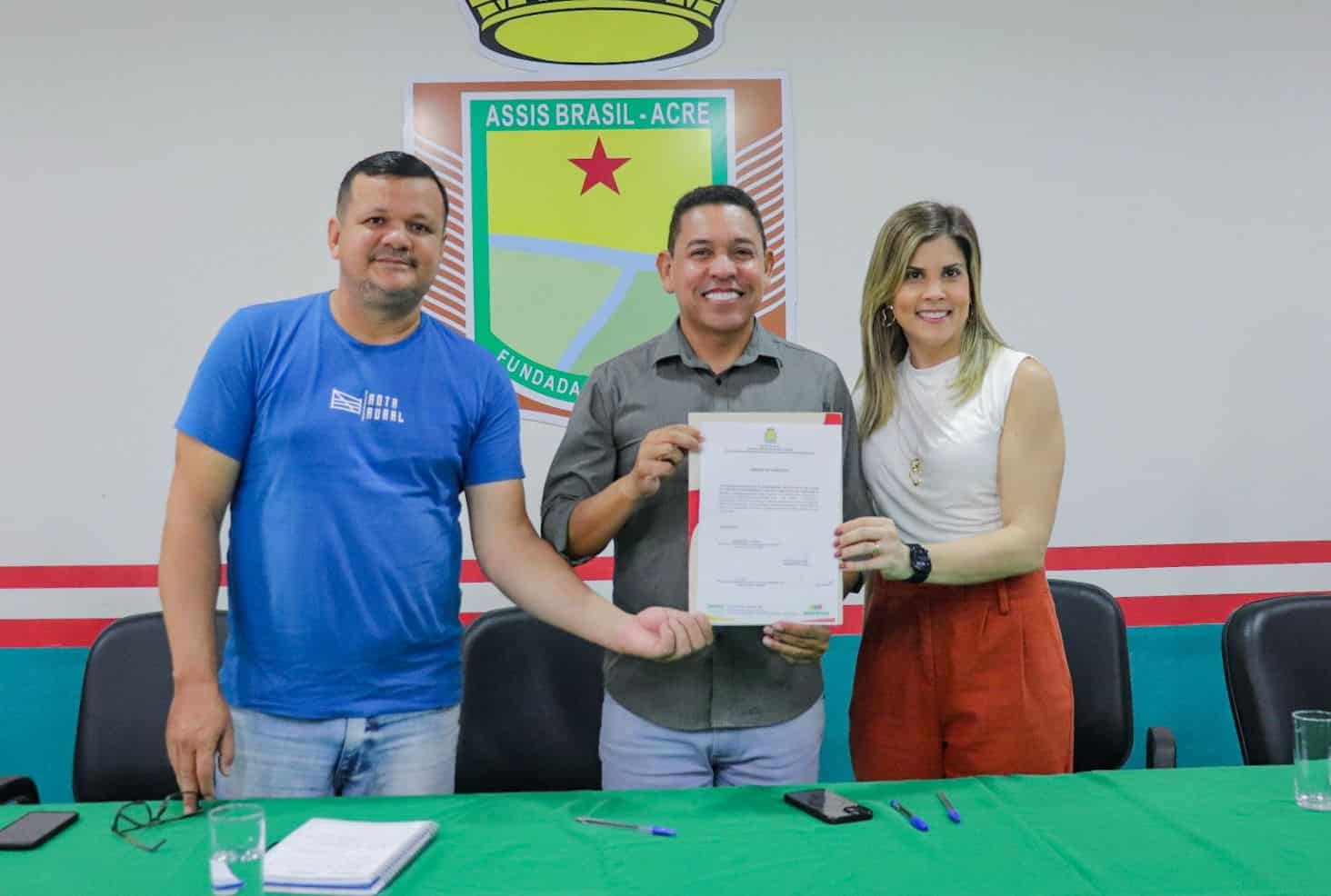 A cerimônia de assinatura da nova parceria ocorreu nesta quarta-feira, 19, no auditório da prefeitura, com a presença da coordenadora Tíssia Veloso, o consultor Estácio Guimarães, o presidente da Câmara de Vereadores de Assis Brasil, Wendel Marques, do vereador Jurandi Araújo, da diretora de Turismo, Edines Araújo, do presidente da Associação Comercial de Assis Brasil, Lucas Gadelha, Jorge Barros, representando o comércio peruano, e Edipaulo Machineri e Roi Gomes Machineri.