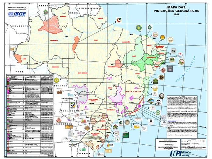 A versão 2018 do Mapa das Indicações Geográficas do Brasil ganhou cinco novos produtos, que receberam Selos de Indicação de Procedência: a farinha de mandioca de Cruzeiro do Sul (AC), o guaraná de Maués (AM), o queijo de Colônia Witmarsum (PR), as amêndoas de cacau da região do Sul da Bahia e o socol de Venda Nova do Imigrante (ES). Com isso, o número de Indicações Geográficas certificadas no Brasil subiu de 53 para 58.