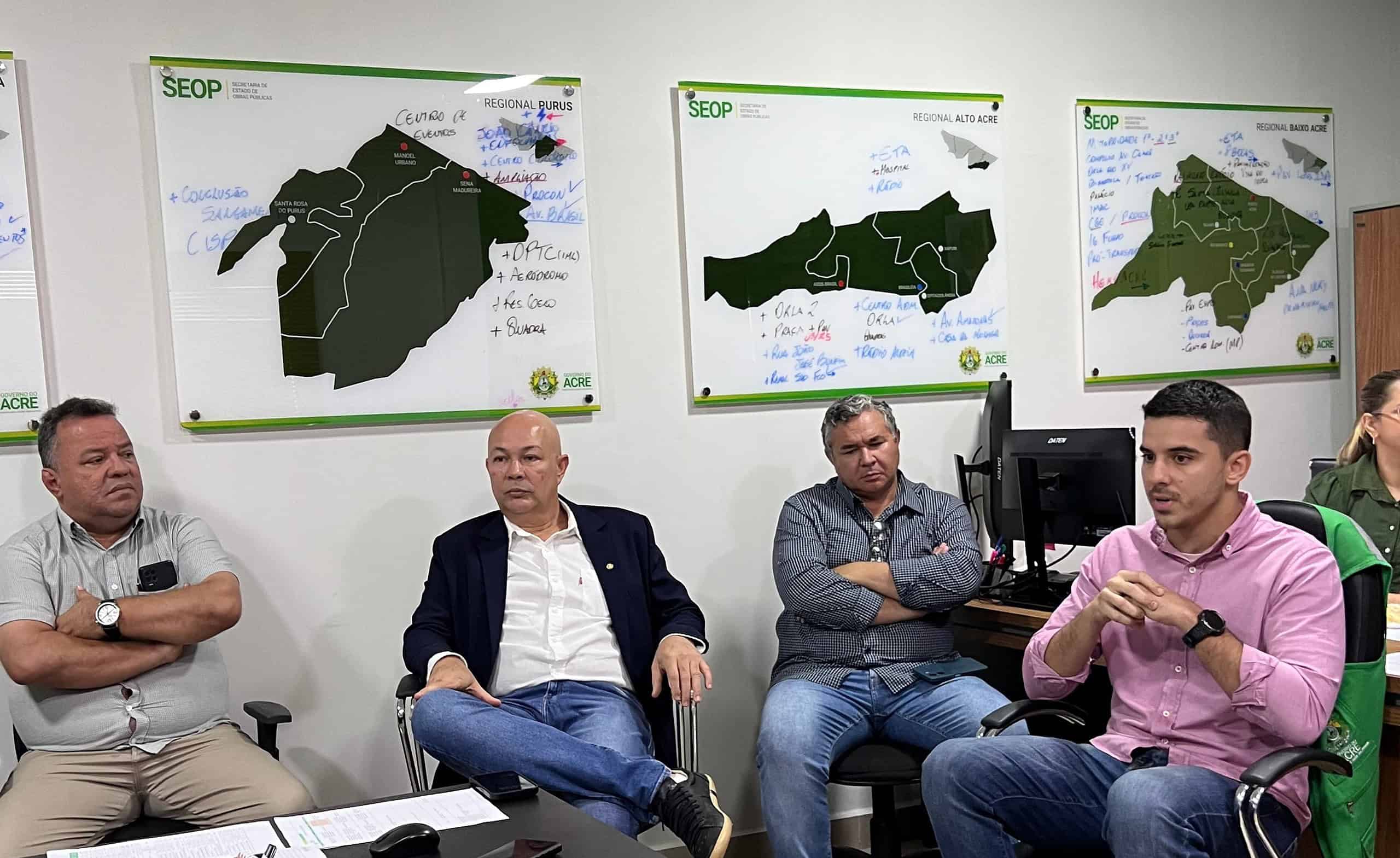 O presidente do Fórum Empresarial do Acre e deputado federal, José Adriano, se reuniu com o secretário estadual de Obras, Ítalo Lopes, empresários, sindicalistas e o presidente do Sindicato da Indústria da Construção Civil do Estado do Acre (Sinduscon-AC), Carlos Afonso, para uma atualização do Programa de Estímulo à Construção Civil para Geração de Emprego e Renda (PEC/GER-AC).