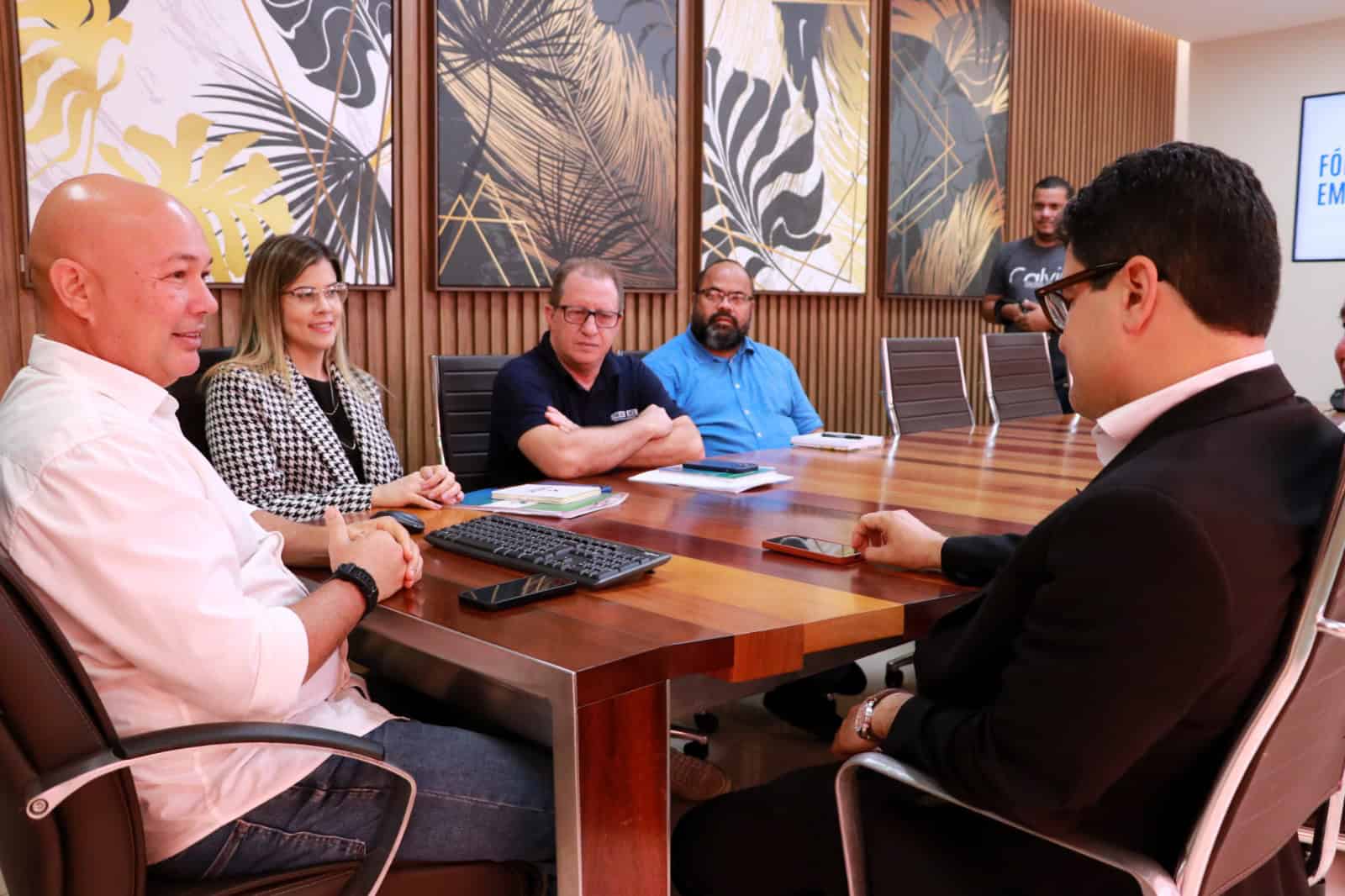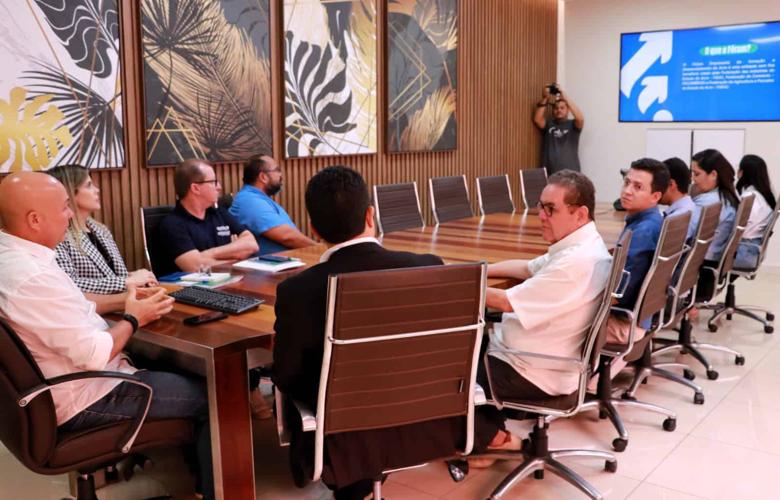 O presidente do Fórum Empresarial de Inovação e Desenvolvimento do Acre, José Adriano, e a coordenadora Tíssia Veloso receberam, na manhã desta sexta-feira, 19, o deputado estadual Eduardo Ribeiro (PSD) para uma apresentação sobre o trabalho da iniciativa junto aos setores produtivos. O encontro ocorreu na Federação das Indústrias do Acre (FIEAC) com a presença do coordenador regional da Suframa, Jefferson Barroso, do diretor da FIEAC, Elson Dantas, e o assessor de relações institucionais, Mozani Mariano.